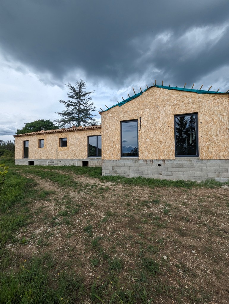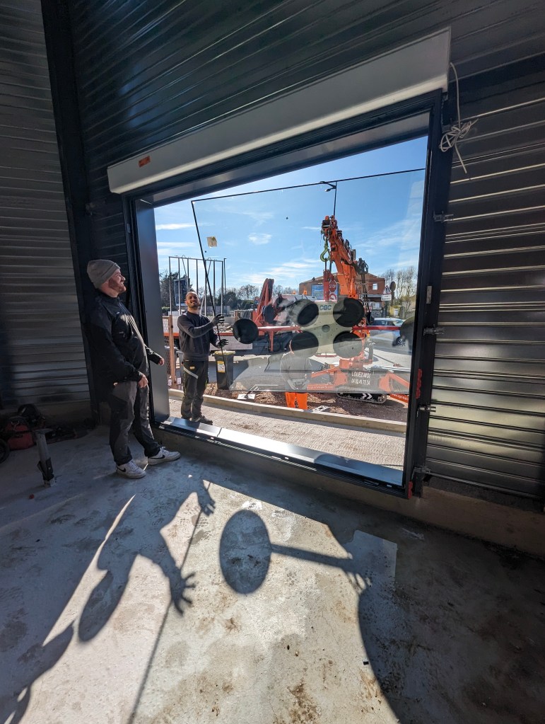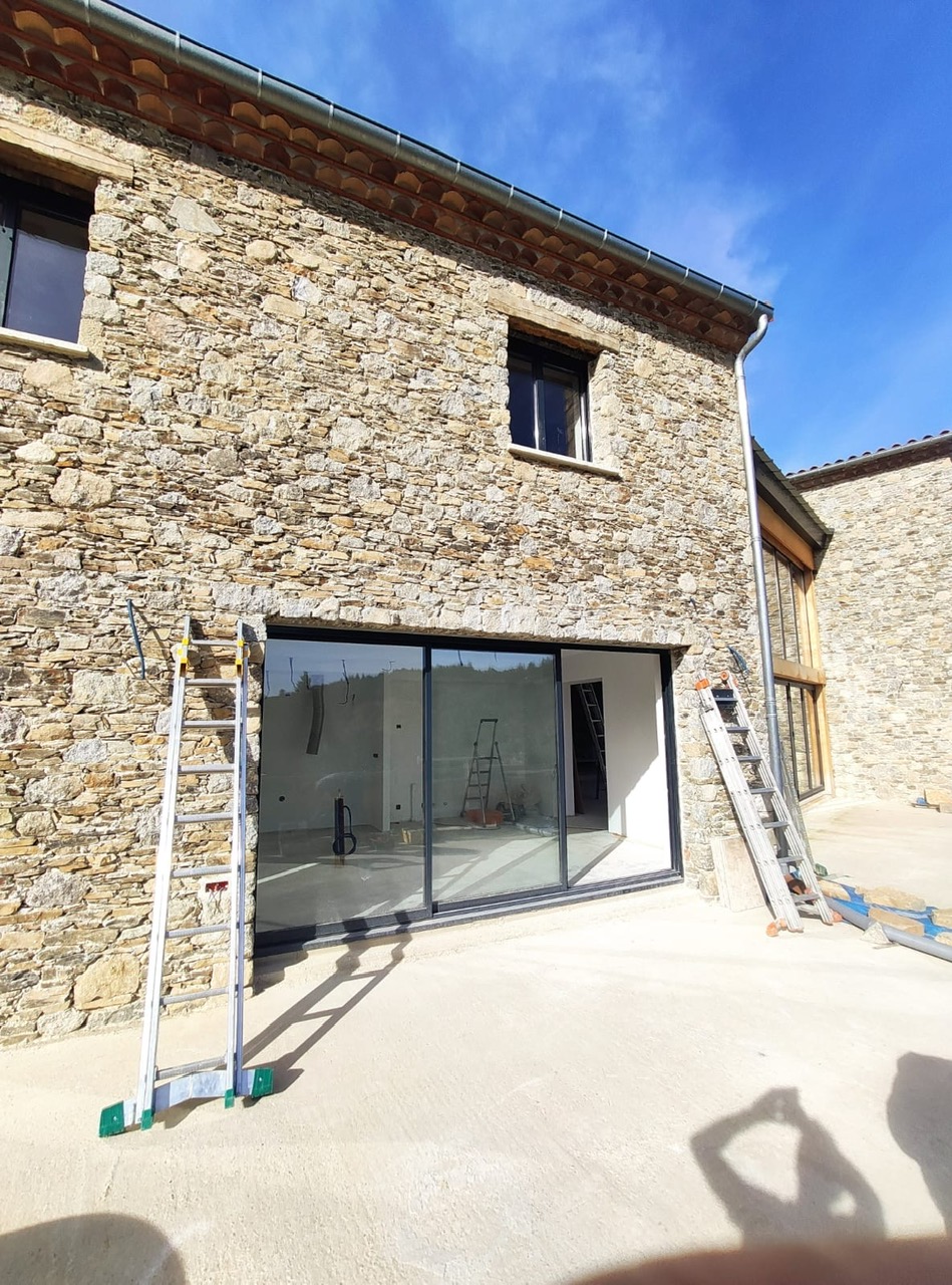 Pose des ouvertures sur une maison en cours de construction